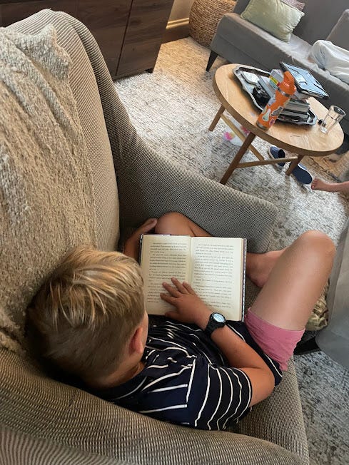The summer was still rich without “enrichment.” We went to the library multiple times a week, read voraciously all around, kept up with our “brain work” to keep skills fresh (and try to improve someone’s handwriting ;)) and had lots of interesting discussions while we drove around. The kids planted veggie and flower seeds on their own, used hot glue and tape to make cardboard creations, played with water, figured out how to fly drones, and worked on navigating conflict more skillfully. I overheard my 4 year old say, “Can you please not do that? You can use this shovel to help me if you want,” to another little kid at the sandbox today, and I could see the fruitfulness of practicing it throughout the summer with his siblings.